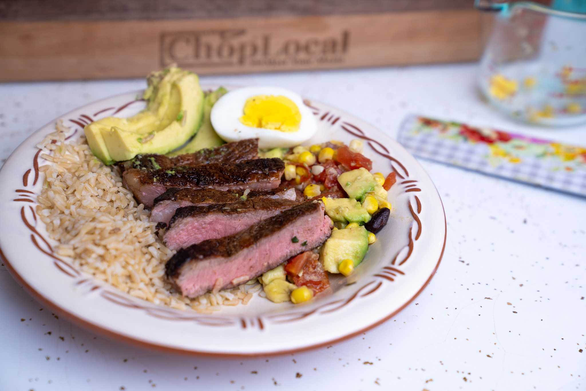 Adding ground beef, shredded chicken or shredded Turkey is a perfect protein addition to this bowl. You can cook and season the beef, chicken, lamb or turkey yourself if you like, or you can buy it precooked. If you want to cook it yourself, you might consider a roast or other meat that easily shreds. Here are some ChopLocal options:
